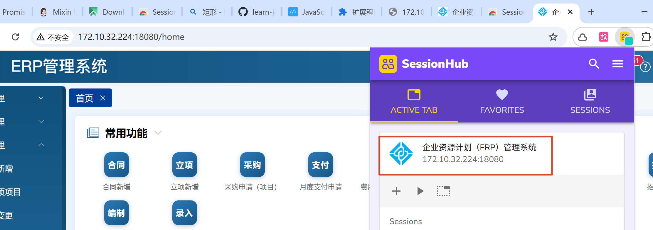 工作中需要在同一个网站上登录多个用户,通常是开多个不同的浏览器,但是这样很消耗内存,发现一个 Chrome 插件可以实现不同的浏览器标签使用不同的 Session 以实现同一个浏览器同一个网站登录多个用户。 插件页面: https://chromewebstore.google.com/detail/sessionhub-multi-account/okjdkjeiihhiaakknbecdkdakmnhaaem 安装好后打开你需要多开的网站,并点击插件: 点击 + 号会为该网站生成一个独立的 Session: 现…